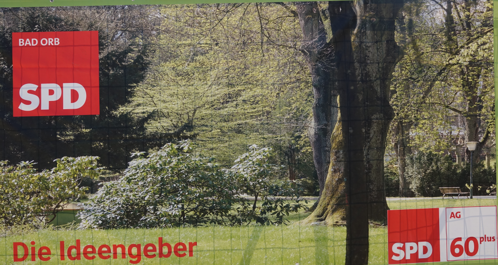 Zu den Frühjahrsstürmen Stürmen wurden die Bauzaunposter abgehängt und das Poster der SPD Bad Orb hängt wieder.