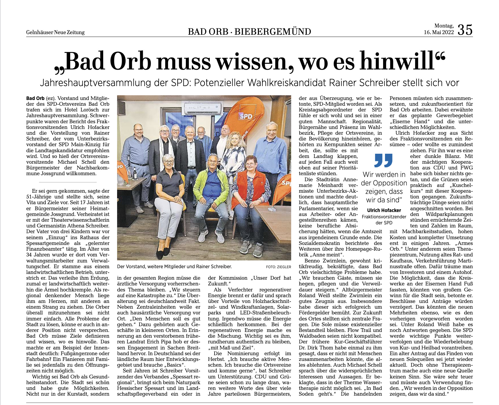 - Presse-Artikel: Jahreshauptversammlung der SPD Bad Orb am 4. April 2025